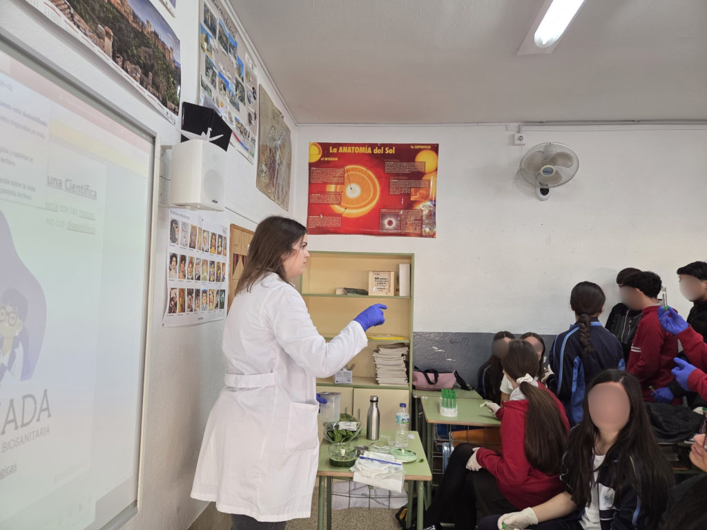 El 23 de febrero tuvo lugar en el Colegio Caja Granada la actividad “Experimenta como una científica (Ciencia con las manos, no con diapositivas)”, impartida por Sara Moreno San Juan, María José Muñoz Domene y Paula Sánchez Uceta, integrantes de las Plataformas Tecnológicas del ibs.GRANADA. La sesión estuvo dirigida al alumnado de 4º de ESO y se centró en mostrar el trabajo científico desde una perspectiva práctica y participativa.