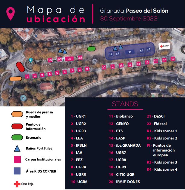 Puede consultar el siguiente mapa para ubicar cada uno de los stand donde participa el ibs.GRANADA: