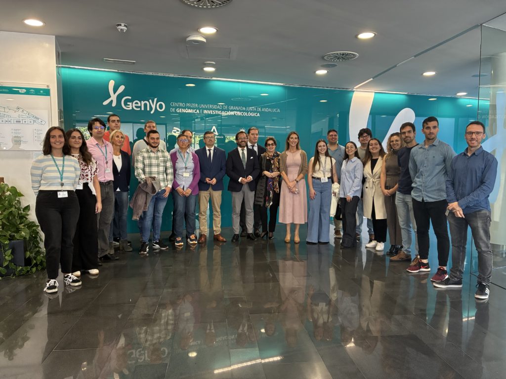 Granados, acompañado del delegado territorial de Empleo, Javier Martín Cañizares, ha mantenido un encuentro con algunos de los jóvenes participantes y ha visitado distintas unidades de GENyO junto a los responsables de las entidades colaboradoras: el director de la Fundación Progreso y Salud (FPS), Gonzalo Balbontín; la directora gerente de la Fundación para la Investigación Biosanitaria de Andalucía Oriental (FIBAO), Sarah Biel; la gerente de GENyO, Luisa Rancaño; y la directora científica de GENyO, Marta Alarcón.